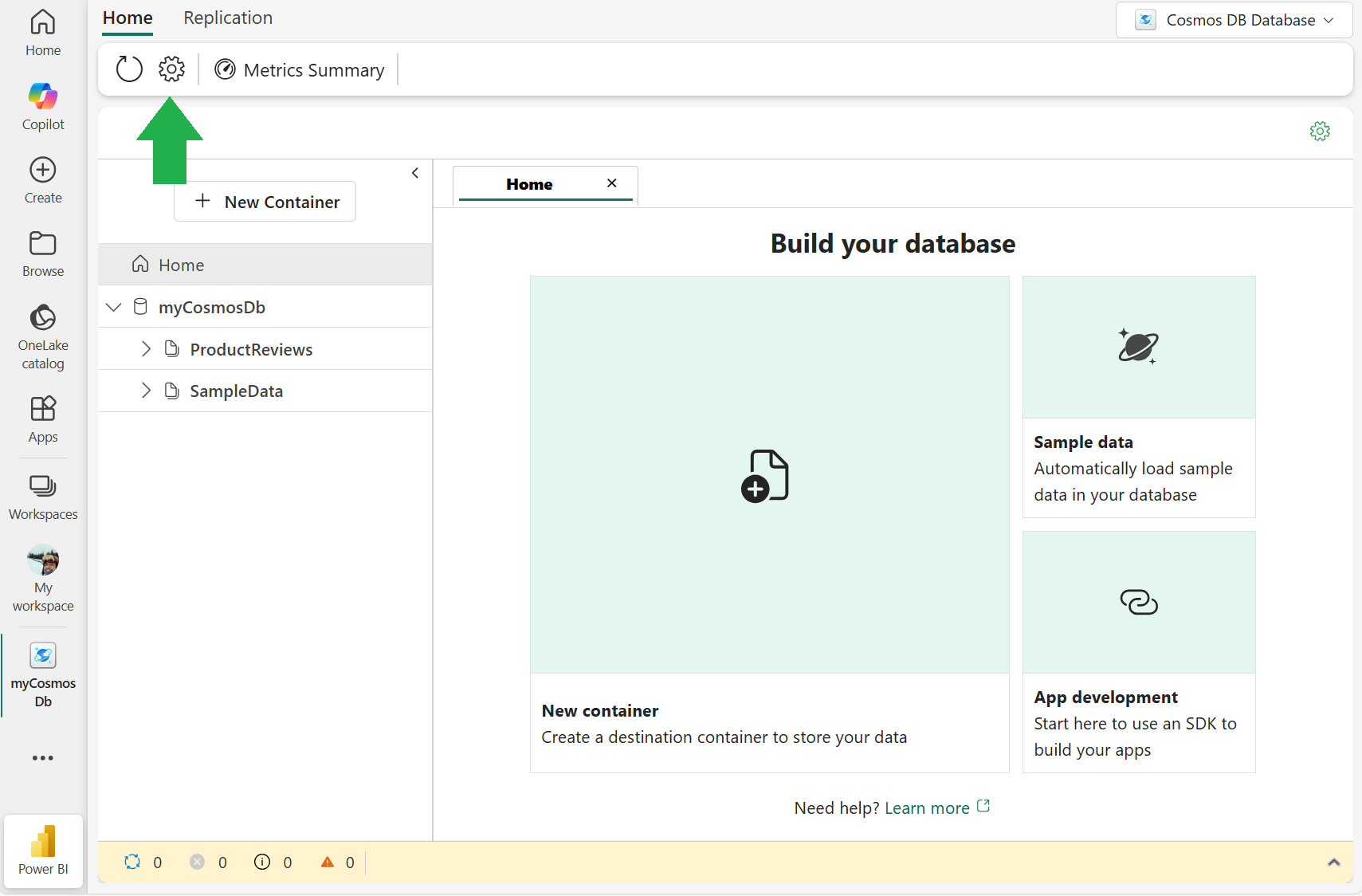 azure-cosmosoch installera det. Mer information finns i Hantera bibliotek.Gå till inställningarna för Fabric Cosmos DB-objekt .