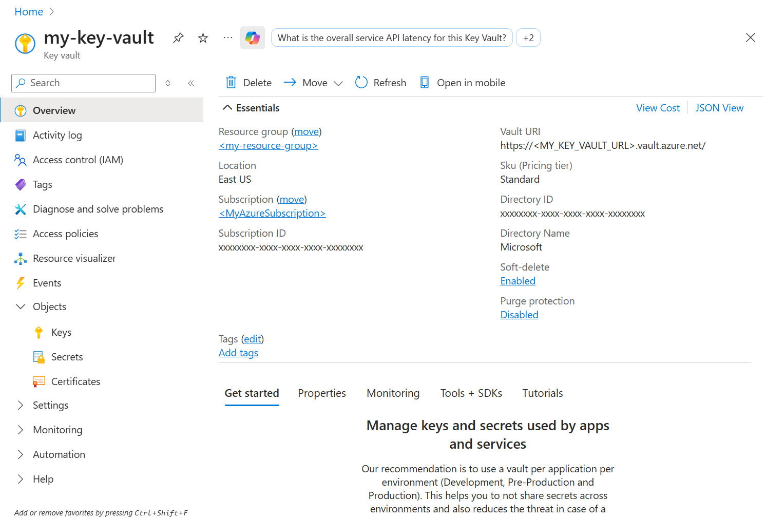 KEY_VAULT_URLmed detVault URIhämtade i föregående steg. -