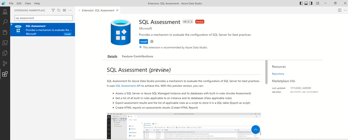 SQL Assessment-tillägget för Azure Data Studio (förhandsversion) ger en mekanism för att utvärdera konfigurationen av SQL Server för bästa praxis.