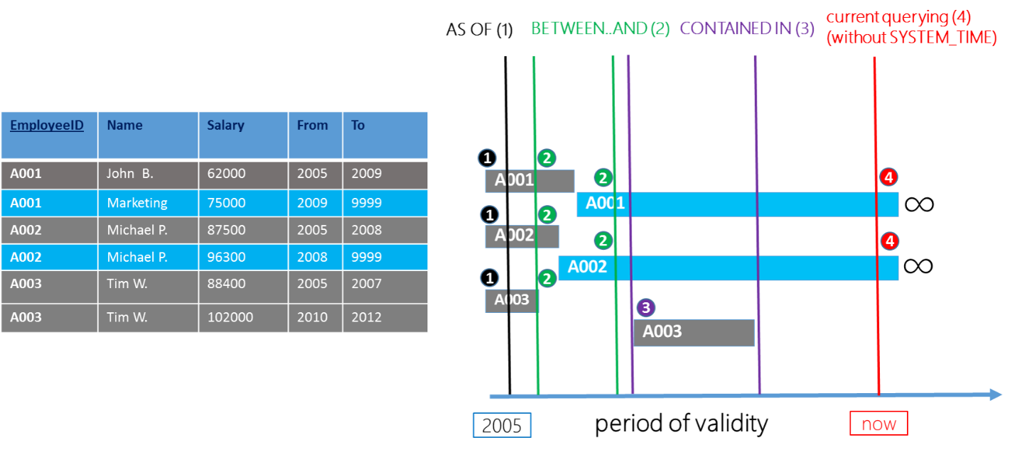 FROM Employee FOR SYSTEM_TIME AS OF @asOf