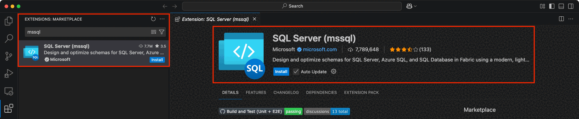 MSSQL-tillägget för Visual Studio Code stöder utvecklare som skapar program som använder Azure SQL (inklusive Azure SQL Database, Azure SQL Managed Instance och SQL Server på Virtuella Azure-datorer), SQL-databas i Fabric och SQL Server. Den innehåller verktyg för att ansluta till databaser, hantera och utforma scheman, utforska databasobjekt, köra Transact-SQL frågor (T-SQL) och visa frågekörningsplaner i Visual Studio Code.