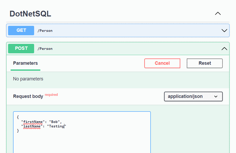 GET展开 Swagger UI 页上的方法,然后选择“试用”。 选择“执行”,此时会返回你刚刚创建的人员。