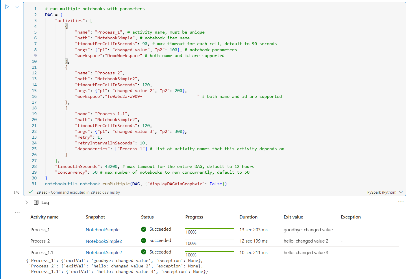 results = notebookutils.notebook.runMultiple(dag)