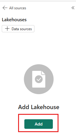 - 若要使用现有的湖仓,请选择 现有的湖仓 打开 数据枢纽 对话框。 选择要使用的湖屋,然后选择“添加”。